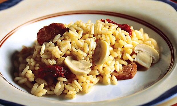 - Quando o arroz estiver quase pronto, junte o cogumelo e o tomate seco.