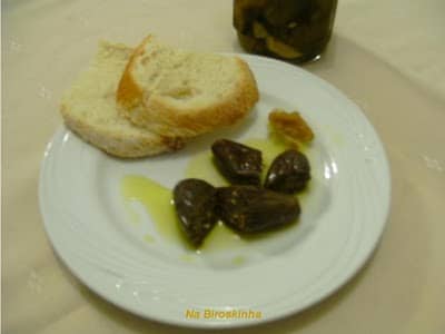 • Dica: Quando for montar os potes de conserva, coloque junto com as berinjelas e o alho, uns 100 g de nozes picadas grosseiramente.