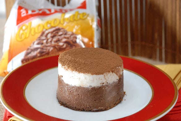 • Após esse tempo, retire os bolinhos do freezer, coloque o chantilly por cima e polvilhe achocolatado.
