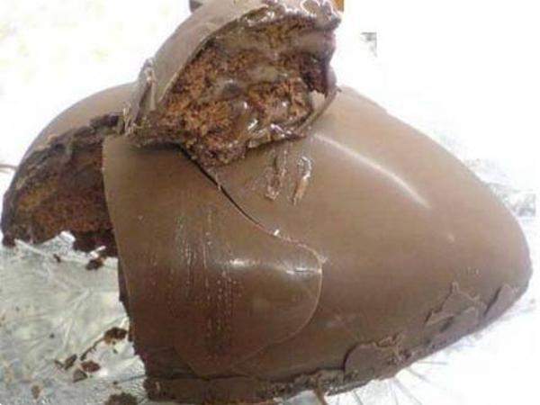 • Corte a massa do pão de mel, mais ou menos do tamanho da fôrma do ovo de páscoa e coloque na fôrma.