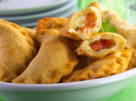 • Coloque o recheio já frio sobre a massa e feche selando com água fria.