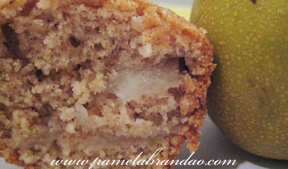 - Junte o fermento, misturando delicadamente, e em seguida a pera.