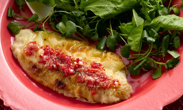 - Espalhe sobre os filés e sirva-os acompanhados de salada de folhas.