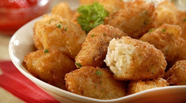 • Mergulhe os pedaços de peixe na massa, retire e frite em óleo quente.