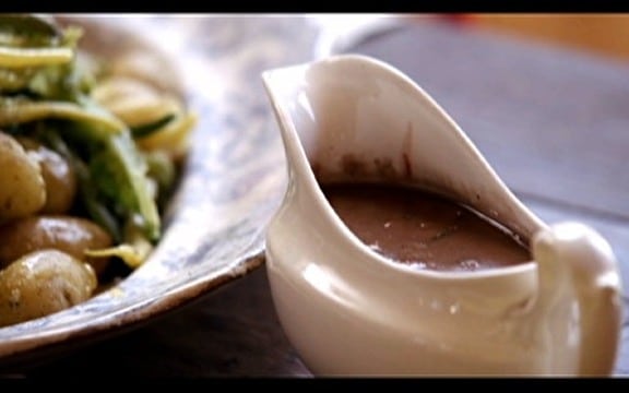 • Acrescente uma taça de vinho tinto e deixe evaporar.