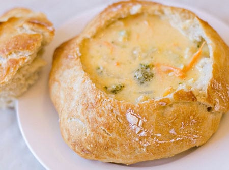 Dica: você pode usar a tampa do pão para comer com a sopa.
