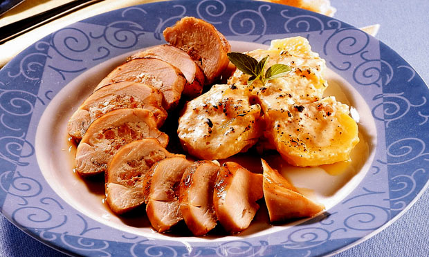 • 1 xícara (chá) de peito de peru cozido e desfiado