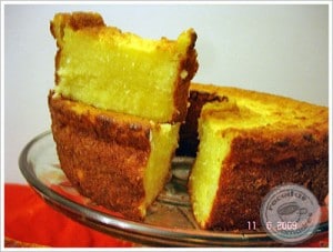 - Despejar a mistura em uma forma de 20 cm de diâmetro untada com o resto da margarina e levar ao forno, pré-aquecido, por 30 minutos.