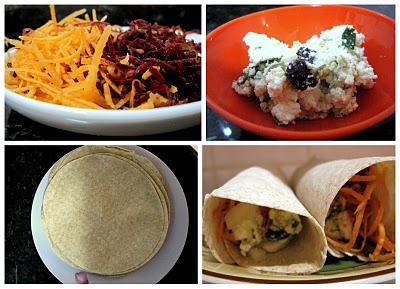 • Forre o meio de cada folha de wrap com a ricota, e acrescente cenoura e beterraba.