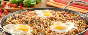 - Quando o arroz estiver quase seco e já cozido, quebre os ovos sobre a panela, até cobrir todo o arroz.