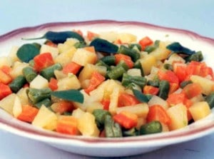 - Distribua os vegetais no prato que será servido e regue com o creme de palmito.