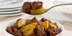 • Em uma panela de pressão, aqueça o óleo e doure os cubos de carne.