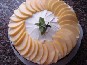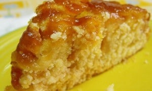 - Dispor a maçã sobre o bolo e pincelar com o mel.