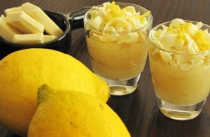• Disponha em potinhos transparentes e decore com as lascas de chocolate branco e a outra colher de raspas de limão siciliano.