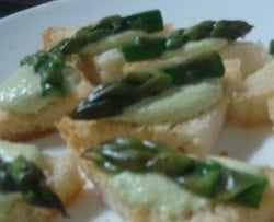 • Arrume os aspargos sobre os canapés, em diagonal.