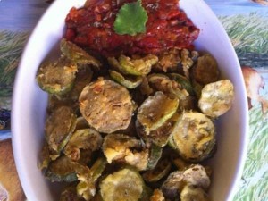 • Decorrido o tempo, lave as rodelas de jilós com água e enxugue no papel toalha até ficarem sequinhas, este passo tira o amargor do jiló e facilita a atuação do fubá.