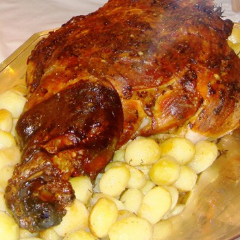 - Cubra-o com papel alumínio e leve-o ao forno médio (220ºC), pré-aquecido, por cerca de 3 horas.