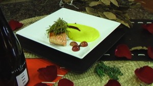 Salmão com Creme de Mandioquinha e Gengibre nas Uvas