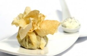 • Transfira as trouxinhas para uma assadeira grande e leve ao forno pré-aquecido a 150ºC (temperatura baixa).