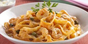 • Em uma travessa, coloque o talharim e por cima o molho.