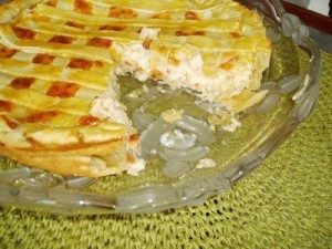 - Coloque sobre a massa pré-assada e leve ao forno para gratinar.