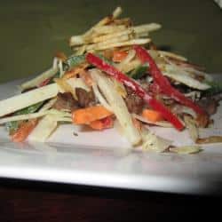 • ½ xícara de cebola-roxa cortada em tiras finas