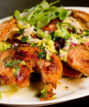 • Os tijolos podem ser substituídos por uma panela ou frigideira desde que tenham um peso considerável para pressionar o frango e possam ir ao forno.