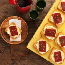 • Passe a manteiga nas torradinhas e por cima espalhe a pasta.