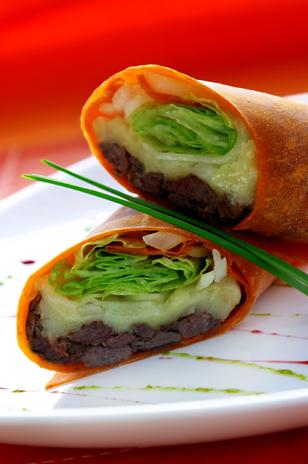 • Divida a carne, as tortilhas, o abacate e alface e enrole-os no pão folha.